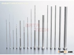 The minimum diameter of pin to be machined is 0.2mm,with the maximum precision up to 0.002mm. Further machining such as chrome-plating and character-engraving is allowed for working end. Unremitting efforts in research has made us the pioneer to make ejector pin with high-speed steel which is of high hardness, high ductility, high grinding resistance and high heat resistance, better for precision mold, capable of increasing the service life significantly, particularly being very effective in controlling the hot deformation for precision mold.